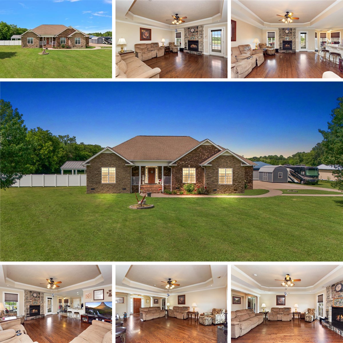 BEAUTIFUL HOME on 3.13 acres with all the AMENITIES for LARGE GATHERINGS to make LOTS of MEMORIES! AWESOME "SALT Water POOL" with slide, diving board, and white PRIVACY Fence around the Backyard! There is more... a 20' X 30' PAVILLION with a concrete floor, ceiling fans & a grill with gas piped to it. There is a nice covered back porch with ceiling fans and a REC Room used as a Pool House with a half bathroom. The home was renovated a few years ago with Engineered Hardwood Floors & Tile in "WET" areas. The "Gourmet Kitchen" is the Chief's KISS with KRAFTSMAN CUSTOM CABINETS, soft-close drawers and cabinets, and QUARTZ Countertops, an ISLAND with a 5-Eye Cooktop, a Convection Oven as well as a Warming Drawer, Stainless Steel Hood, Top of the Line Dishwasher, & a Garbage Disposal. The Master Suite features a TRAY Ceiling, Crown Molding, Walk-In Closet for Him & Her, Large Bathroom with whirlpool, 2 separate vanities, Huge Walk-In Tiled Shower, Lots of Sprayer Heads with Glass Doors. When you are ready to RELAX, you can go out on the Covered Back Porch while Sipping your favorite drink, and watching the Glistening Pool. The Living Room is a nice size with a Stone Gas Fireplace with a big window on one side and a door to the porch on the other. The kitchen overlooks the Living Room. There are two additional bedrooms on the other end of the house with a bathroom. The Utility Room is on that end of the house, also. The Dining Room is spacious, right off the kitchen, and is nice to have for large gatherings. There is a one-car garage with lots of room for storage. The other garage was made into a REC Room used as a Dressing Room for the Pool, a Game Room for Big and Little Kids, and it has a split unit heating/air conditioning, as well as a bathroom.